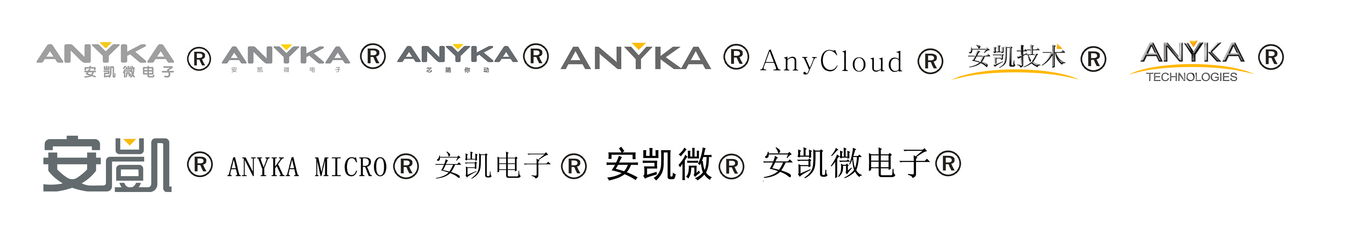等在安凯微电子网站上使用和显示的所有商标、标志,及虽未在网站显示但由安凯微电子注册的其他商标,皆属安凯微电子所有,但注明属于其他方拥有的商标、标志、商号除外。安凯微电子网站所载的任何内容不应被视作未经安凯微电子或其他方书面许可,以暗示、不反对或其他形式授予使用前述任何商标、标志的许可或权利。未经安凯微电子或其他方事先书面许可,任何人不得以任何方式使用安凯微电子名称及安凯微电子的商标、标志。