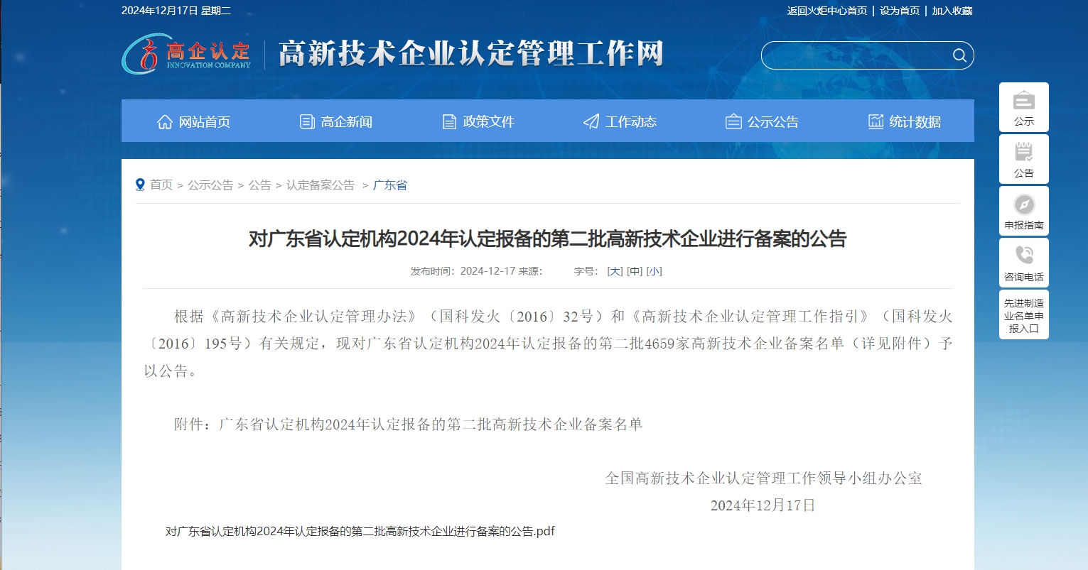 近日,广东省2024年认定报备的第二批高新技术企业备案名单公布。安凯微(股票代码:688620)顺利通过2024年度的高新技术企业复评认定。自2008年首次申请认定至今,安凯微保持“高新技术企业”的资质持续有效。