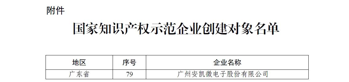 安凯微入选国家知识产权示范企业创建对象名单