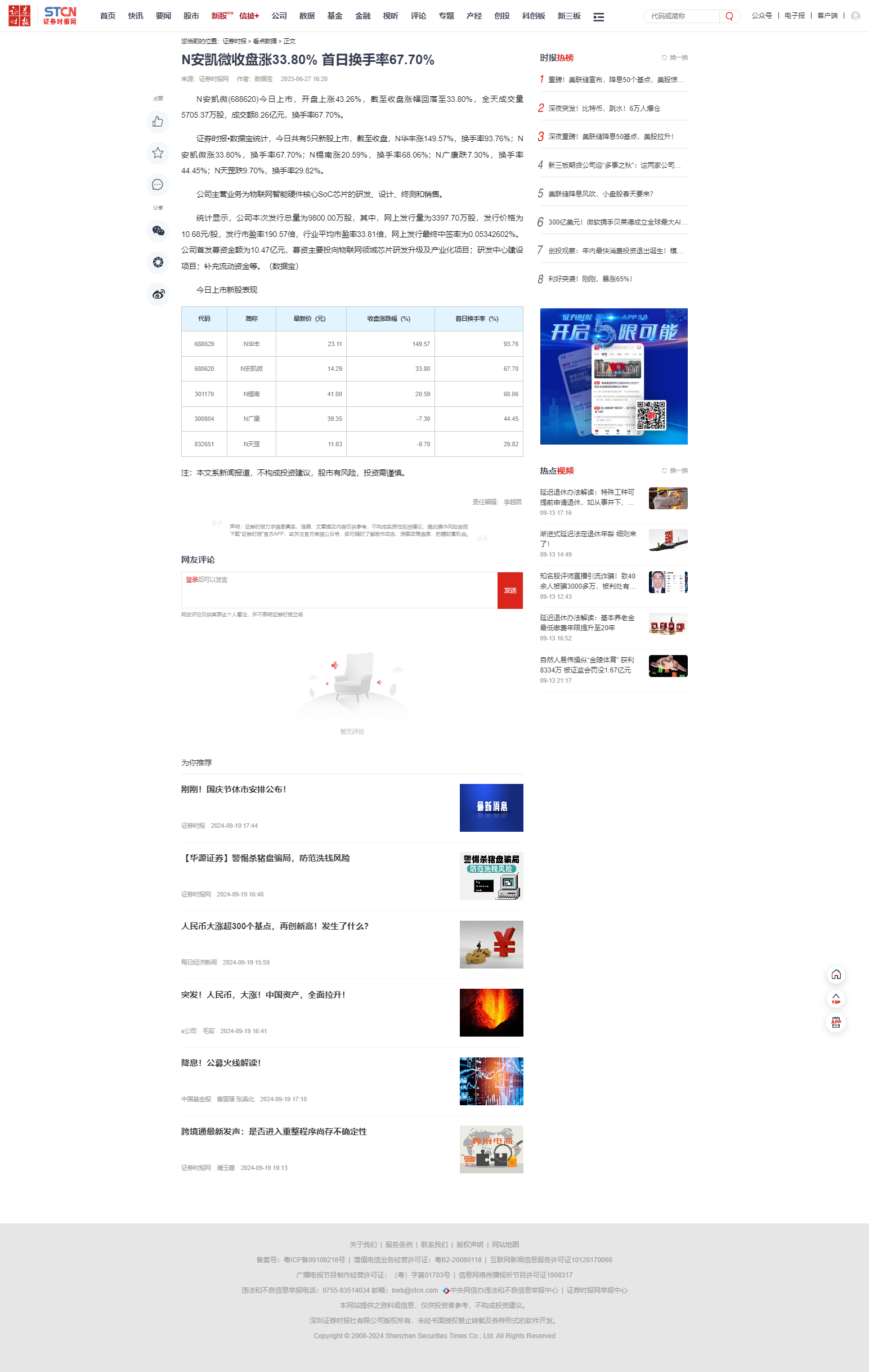 N安凯微收盘涨33.80% 首日换手率67.70%