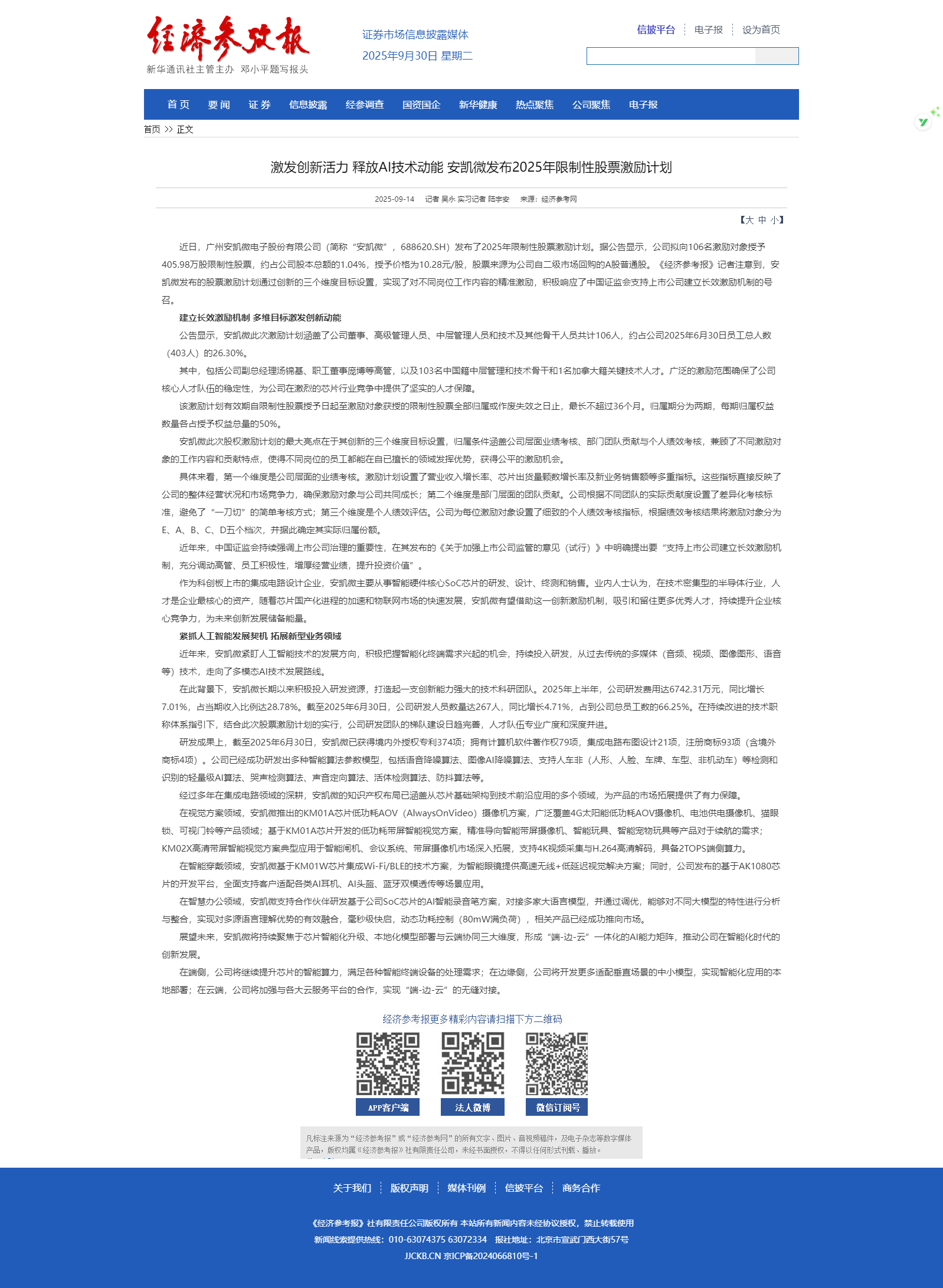 激发创新活力 释放AI技术动能 安凯微发布2025年限制性股票激励计划
